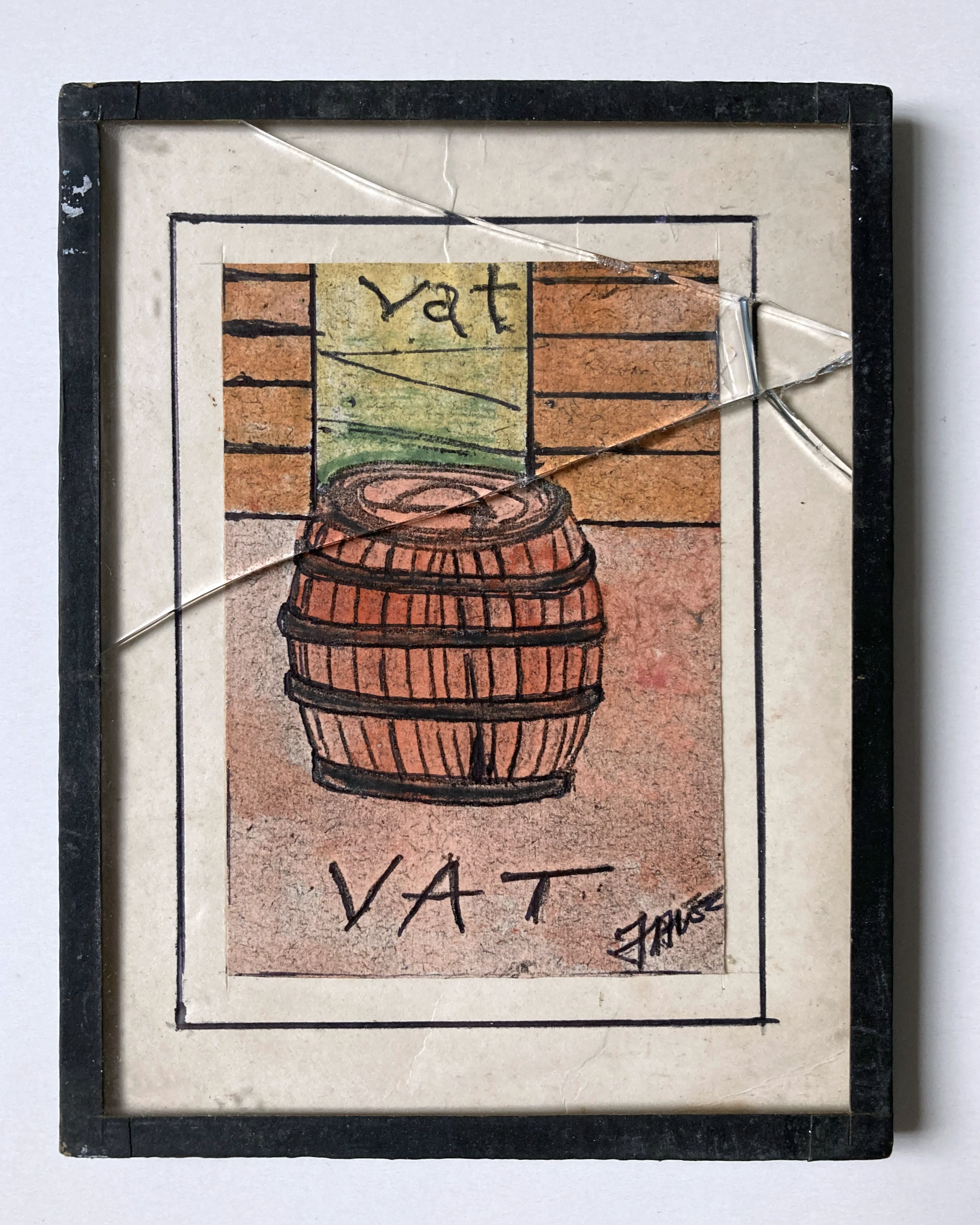 Die Bilder wurden alle am 2. Februar 1991 signiert. Da er auch Rahmen gestaltete sind diese sicher auch von ihm, hier handelt es sich einfach um zwei zusammen geklebte Glasplatten, mit einer Rückwand für die Aufhängung.